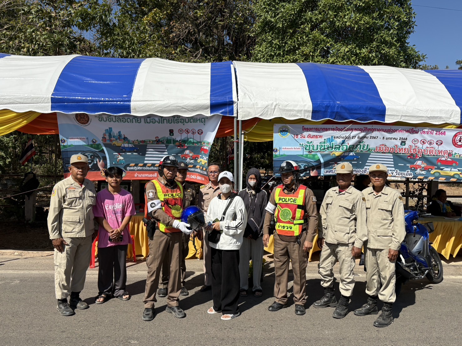 สภ.หนองฮี ดำเนินการโครงการจิตอาสาจราจร รณรงค์การขับขี่ปลอดภัย สวมหมวกนิรภัย เพื่อลดอุบัติเหตุจราจรทา