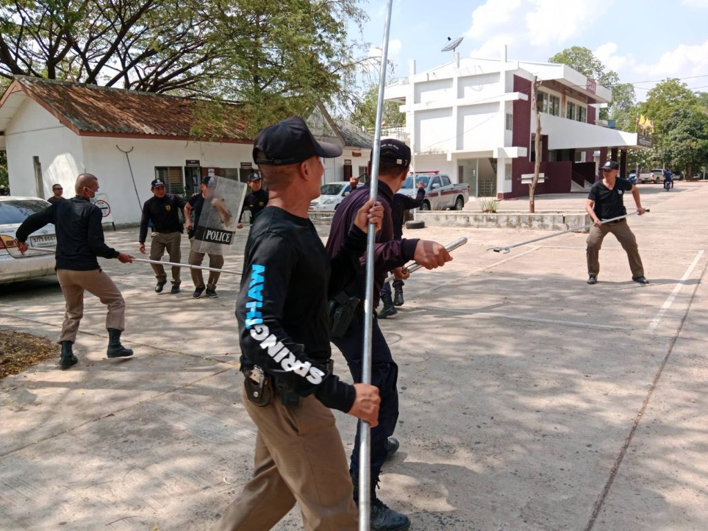 ชุดปฏิบัติการสายตรวจ ก่อนออกปฏิบัติหน้าที่ในแต่ละวัน มีการตรวจความพร้อม อบรม ชี้แจง การปฏบัติ และฝึกยุทธวิธีทักษะการใช้อาวุธ ไม้ง่าม